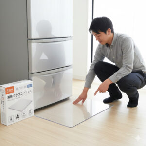 マットを敷くのであれば、必ずセットで「転倒防止ベルト」などで冷蔵庫を壁に固定してください。また、キャスターの下に敷くタイプの小さな耐震ゴムは、フローリングに直接置くと色移りする可能性があるため、ポリカーボネートマットの上に設置するなどの工夫が必要です。「床を守ったけど、地震で冷蔵庫が倒れてきた」では元も子もありませんからね。