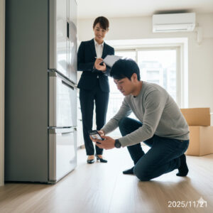 冒頭でお話しした通り、冷蔵庫による「へこみ」は通常損耗です。トラブルになるのは「最初からあった傷なのか、入居後にできた傷なのか」が証明できない場合がほとんど。ですから、冷蔵庫を設置する前に、その場所の床の写真を日付入りで撮影し、管理会社と共有しておくのです。